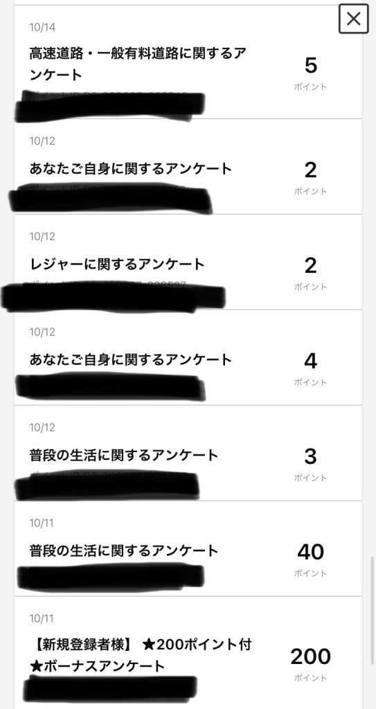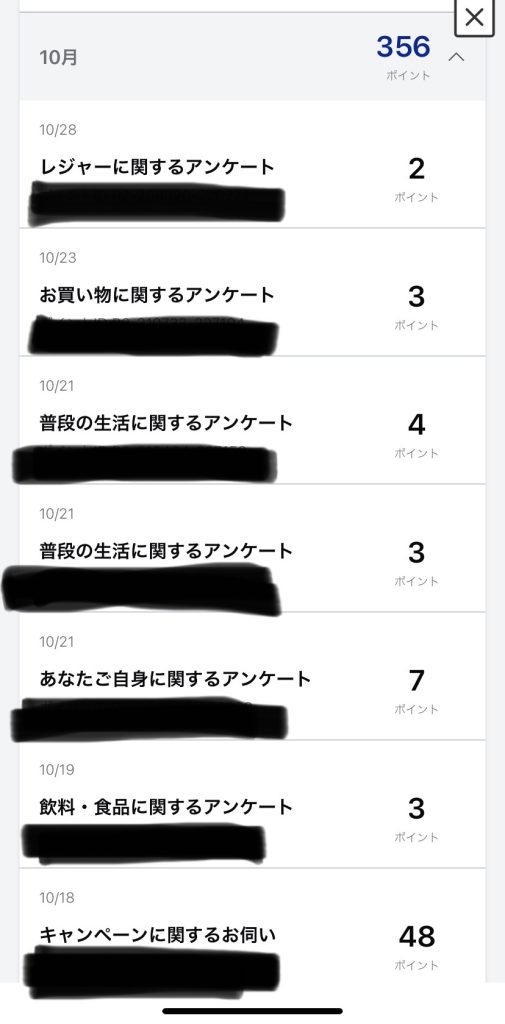 そのためアンケートで貯めるポイントは5円や10円を拾い集めるようなものなので、これだけで月に1万貯めるなどはかなり厳しいです。
