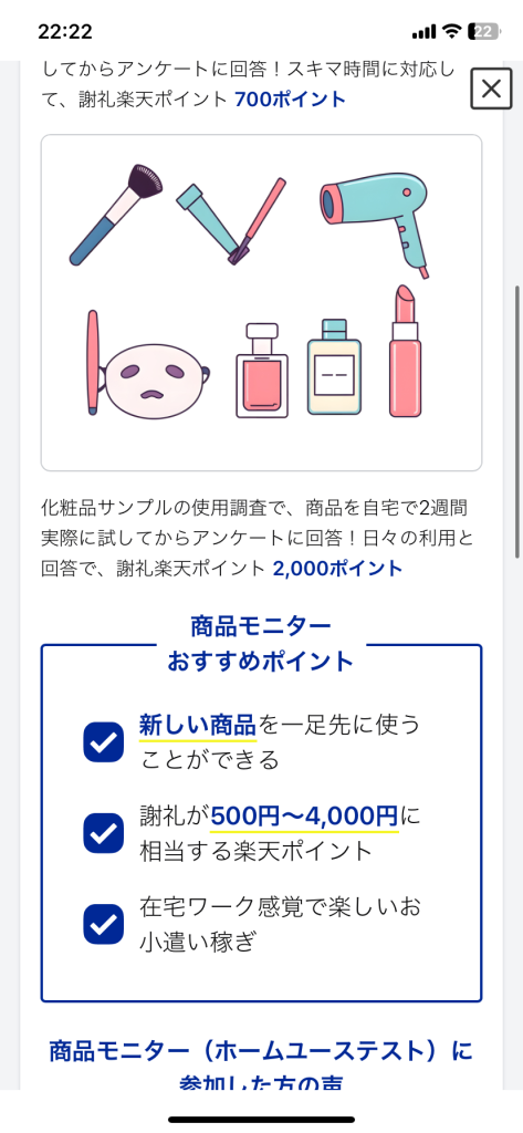 アンケートモニターは企業と60分程度のお話をしてその報酬として、5000ポイントなどの高額ポイントを貰えるものです。